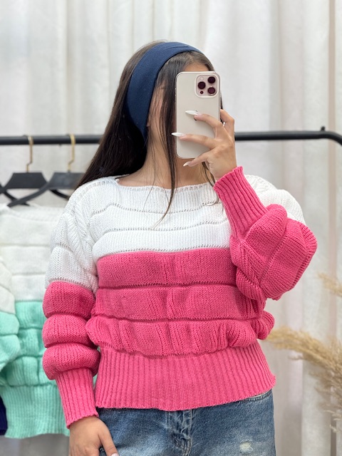 باکسی بافت آستین پفی ترندی  _ کد ۳۲۹۰