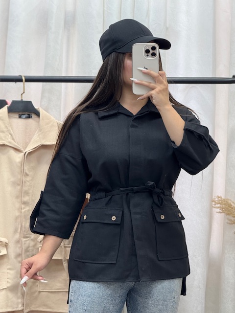 مانتو کتان دوجیب کمر گت